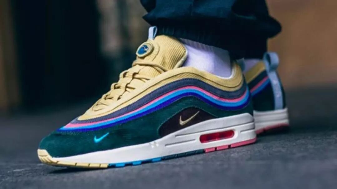 这双鞋准确来说应该是彩色,不能算黄色,但是由于我个人的原因(我太喜欢灯芯绒了),所以在这里推荐给大家,今天我要在这里吹爆灯芯绒,灯芯绒的设计采用的是杂交鞋的理念,将设计者最喜欢的两款鞋结合起来,将air max97的鞋面和air max 1的鞋底结合在一起,当时一起参加air max day比赛的其他九款鞋里面也有几款杂交鞋,但是都看起来很怪,但是这双air max1/97看起来却很自然,就好像这个鞋子本该就这样,鞋面才用了肖恩家乡的材料 灯芯绒,也就是从这之后灯芯绒又开始火了起来,去年不管是国潮还是美潮,灯芯绒的材料都被用到,灯芯绒的外套 裤子 夹克 等等。