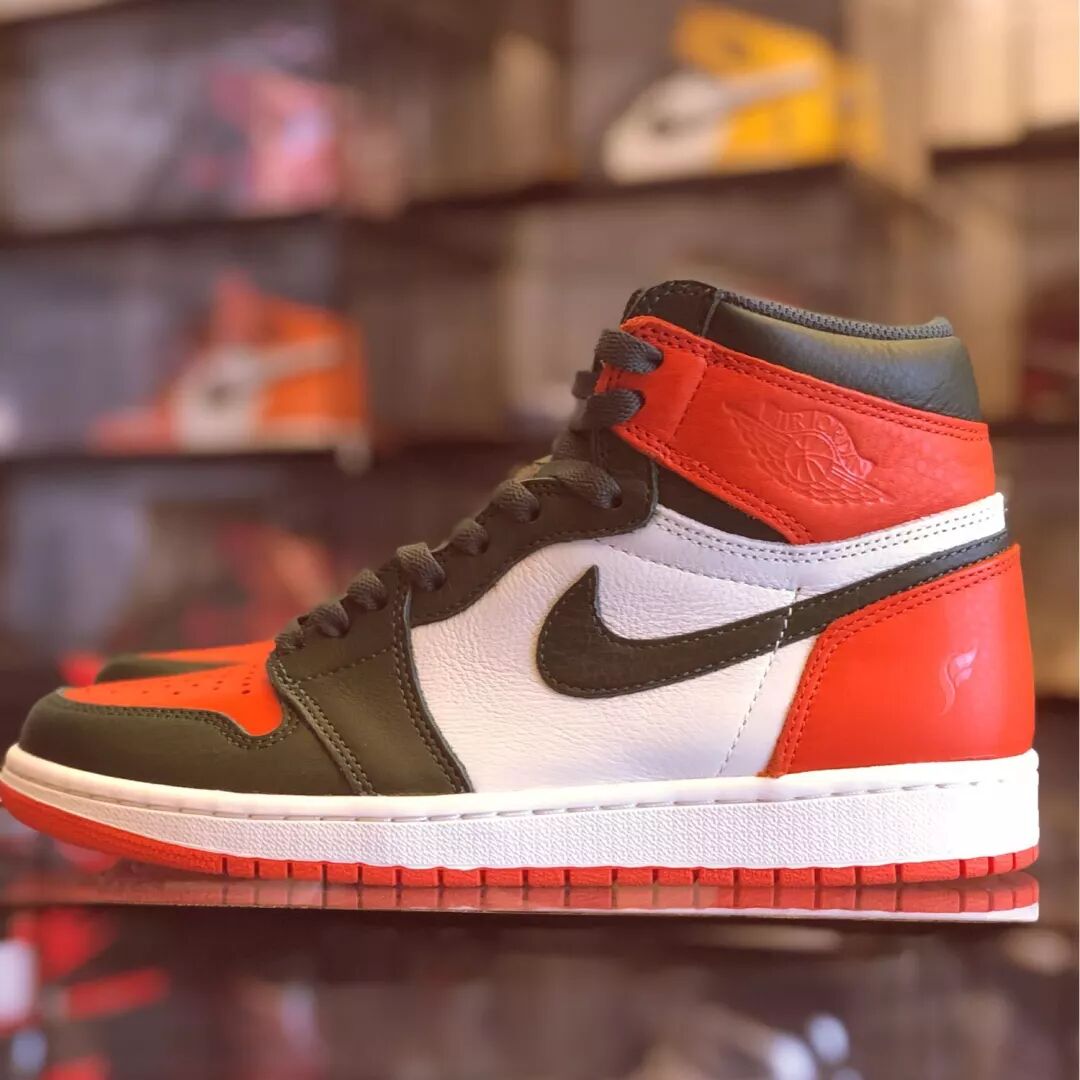“砂糖橘扣碎,AJ1 SoleFly,鞋盒正面和侧面Swoosh为橙色,鞋身皮革质感光滑柔软,墨绿与橙色搭配整体很棒。”