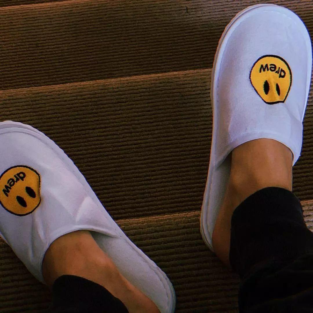 而 Drew House 上架的第一款单品就是 —— 酒店拖鞋。