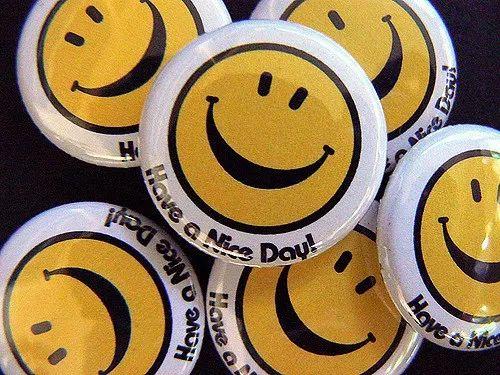 后来,费城的一家周边商店发现了 Worcester Smiley,他们在黄色笑脸上加多了一句「Have A Nice Day」的标语,并推出了一系列产品,塑料袋、卡片、杯子等等,从此 Worcester Smiley 走进了大众市场。