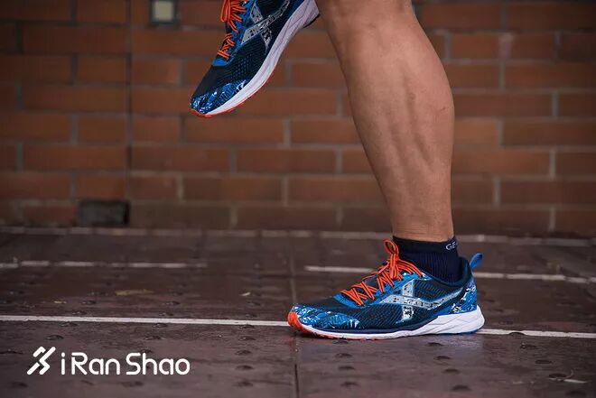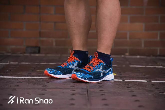 我们依然用低帮版本的追风进行横评,追风是这五双跑鞋中缓冲性能最好的跑鞋,所以脚感也非常舒适,Ortholite鞋垫对脚感的提升非常大。袜套式鞋面弹性很好,不会压迫脚面。