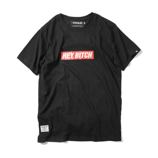 supreme的经典BOX tee再过二十年也许还是很潮很经典,但是500+的市价让人很多人很难去接受,毕竟是一件tee而已,更加疯狂的是20TH纪念款黄金码已经炒到了2000+。既然supreme最初的灵魂是讽刺与恶搞,那就不如恶搞到底。来自双头燕的“hey bitch”最近两年算是秉承了衣钵,将恶搞玩出了新高度。