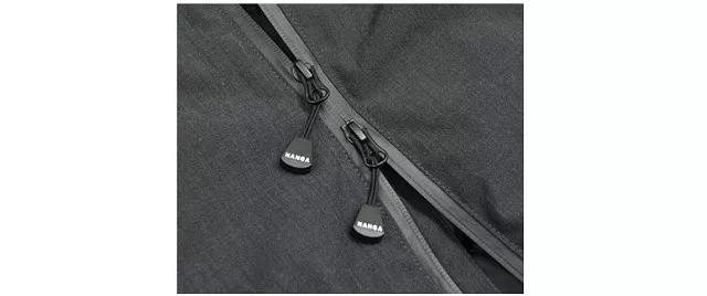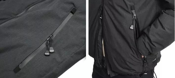 防火设计的同时也考虑到了防水的问题,衣服拉链可防止水侵入。当然,胸袋的拉链也使用了防水设计,侧面的腰袋很大,便于取用;腰袋也是双拉链防水规格;整体有七个口袋,配件的存放也很方便。显然它已经成为一个成熟的设计,对于火灾来说 NANGA x TAKIBI 是非常可靠的羽绒服。
