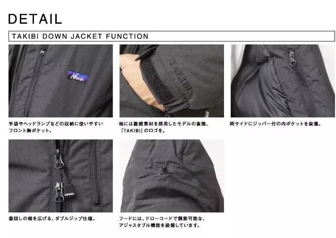 为了在户外保暖自己以及避免被烧坏昂贵羽绒服,日本知名羽绒服品牌 NANGA 就和 TAKIBI 合作推出了一款防火羽绒服。这种由 NANGA 独自研发出的“即使在冬季营地的篝火场也能穿着安心”的羽绒服,于 2016 年 TAKIBI 系列问世。