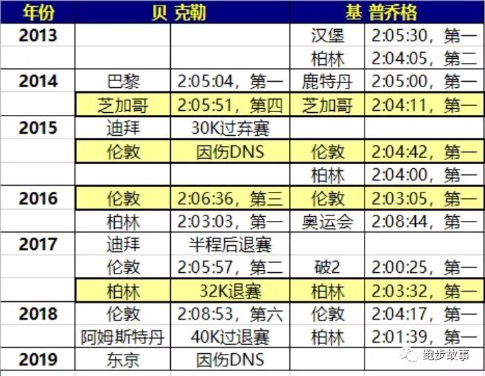 可能是世界最顶级的两个马拉松运动员,迄今已知的参赛结果如下,可以看到,能顺利完赛的,一年也就一两个马拉松。