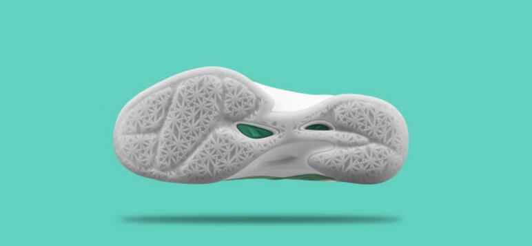 在中底的配置上,音速5用云缓震科技代替了之前的BOUNSE+缓震,作为历经李宁多年调教的云缓震科技,在缓震性能的表现上当然不用解释!大底的雪花纹路分区设计,在美观之余则提高了抓地能力,同时分区设计提高了球鞋在运动中的灵活性。