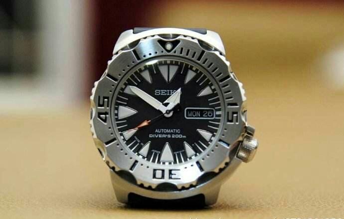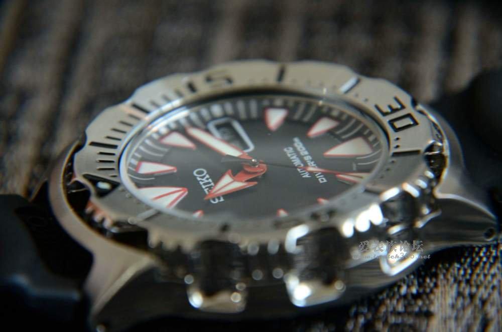 精工SRP313,4R36机芯,表径41mm,200M防水,水怪略显夸张个性的造型很适合小编这样的年轻人!表镜为防刮Hardlex水晶,可以单向旋转表圈,保持对经过时间的跟踪。值得一提的是,水怪系列夜光显示很醒目,即使在黑暗海域中依然能看清时间。