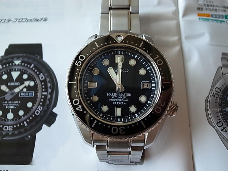 精工 SDBX001(MarineMaster)表盘直径42mm,具有300 米的防水功能,使用8L35A机芯(35石, 18 000 bph),是万元左右性价比巅峰的精工水鬼。与一般潜水表不同,表冠在4点位置。此外,本身的独特密封式背盖是另一大特色,这种设计非常少见于其他的潜水表款,密封式背盖除了提供良好的防水性能外,还能减少底盖厚度,提供良好服贴的绝佳配戴手感。