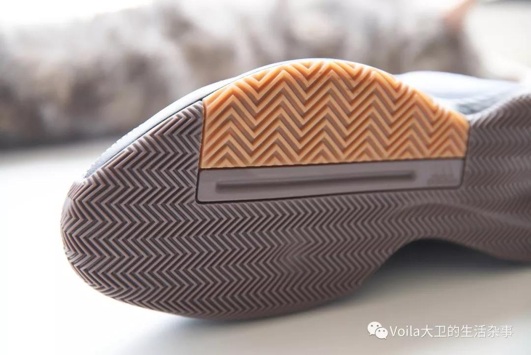 我手上的这双Pro Bounce 19应该是硬质的橡胶底混合了前掌外侧的生胶底,我觉得这算是神来之笔,因为像我个人鞋子磨损最多的地方就是前掌外侧,尤其是启动脚左脚的部分,所以对这部分的加强是非常适合我的,我相信也对多数球友来说一样。