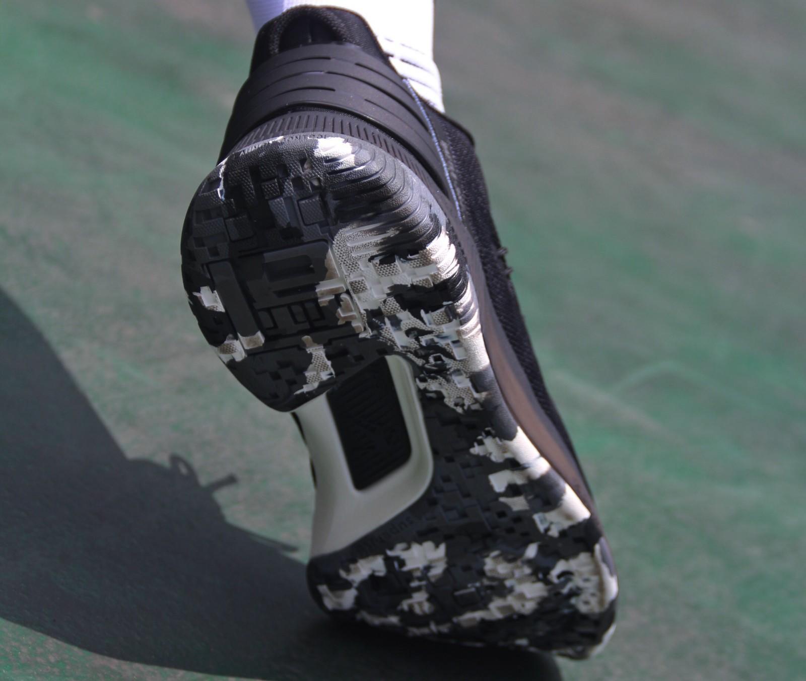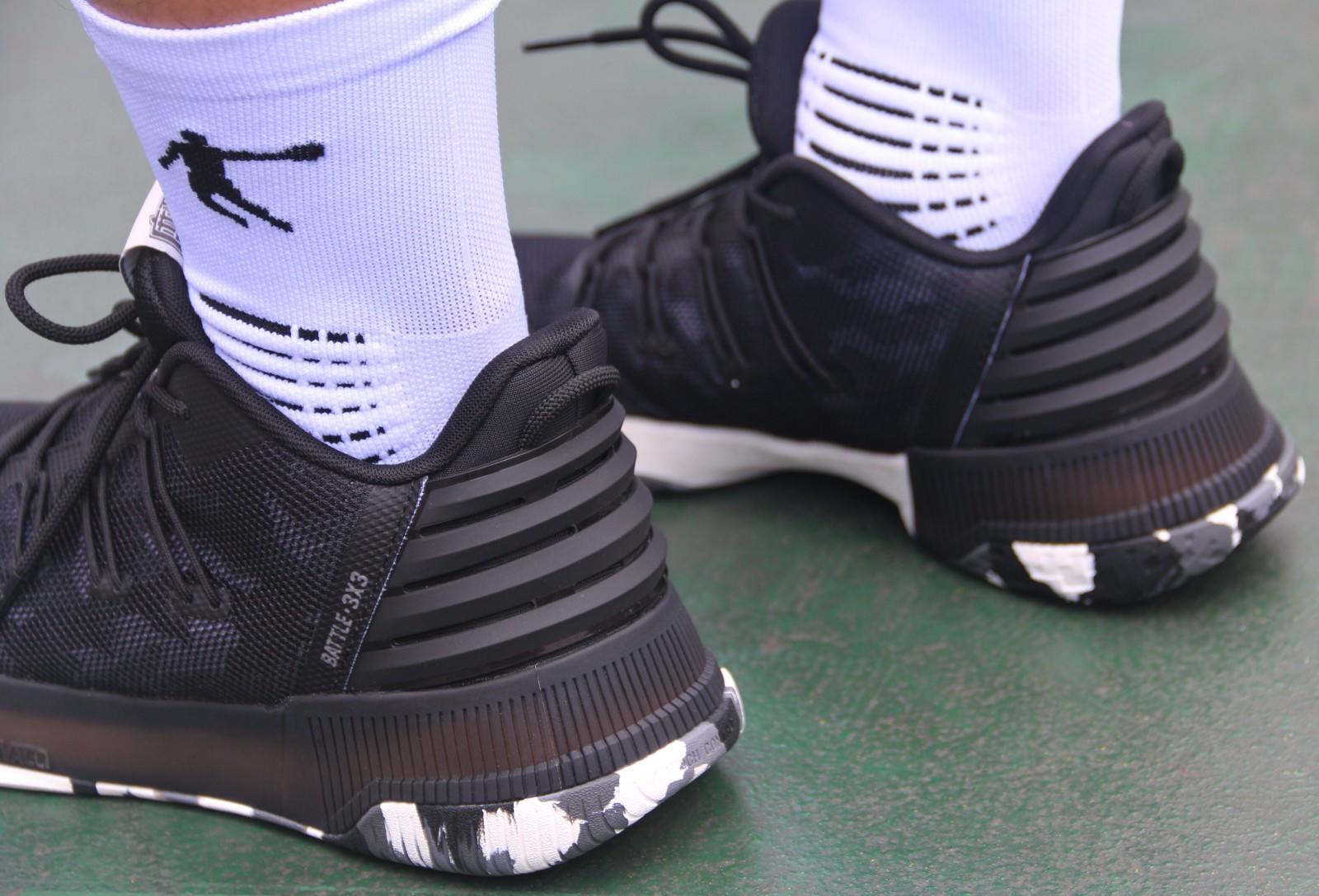 然后是后掌部分,回弹的感受会更加明显,在实战过程中我特意用后脚跟落地,是会有轻微的震脚感,但是这样“刻意”去感受会显得不太客观,缓震是一件有“行程”的事情!大部分朋友从起跳落地,都是前掌先着地,然后再把冲击力分散到后掌,因此,如果我们正常的起跳落地是不会有震脚感受的。