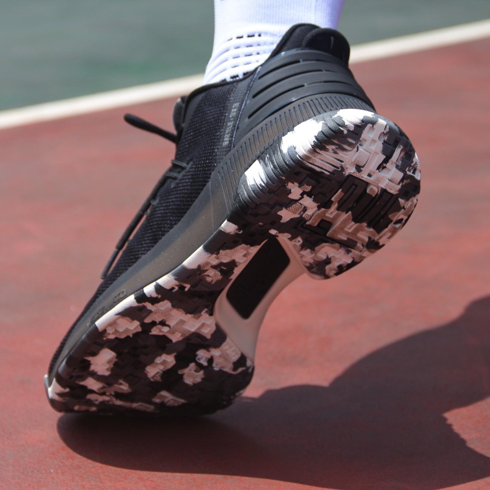 这双磨砺篮球鞋的鞋面运用了编织工艺,给予了更好的包裹感受,一体化鞋身也符合当下的市场需求。