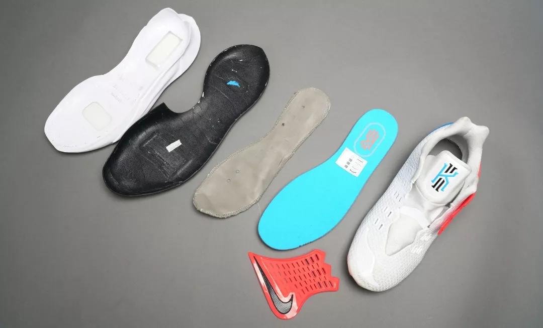 相比较于欧文低帮1来说它的中底的位置是有抗扭片的这两双鞋在中底区域一个比较大的区别。但大家可以看一下这一双鞋,耐克在球鞋内侧提供了一个塑料包裹,一直围绕到了中底,相当于在这一个位置也进行了一定的加固和一个固定的一个设计。