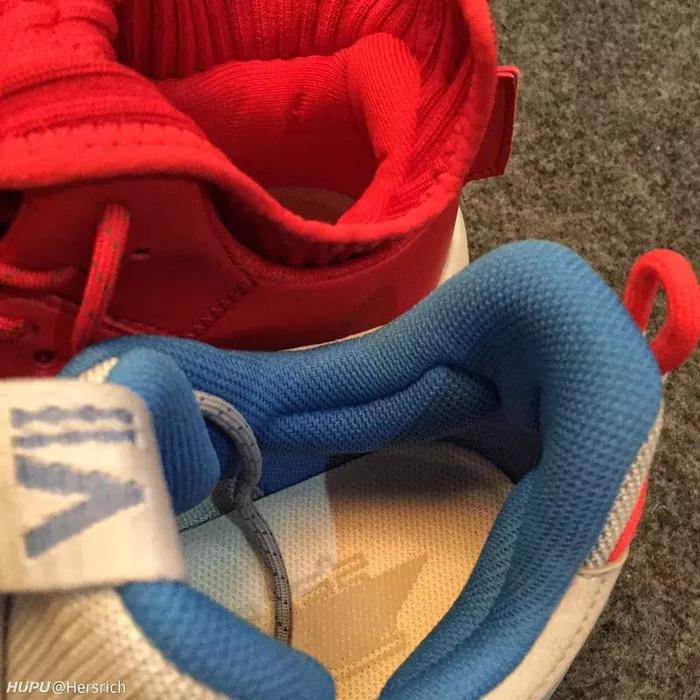 而高帮由于袜套的设计,所以鞋舌那一块和鞋面是缝合在一起的,穿进去舒适感比低帮更好,尤其是前几个鞋带那里那大小适中的那块海绵填充,特别舒服