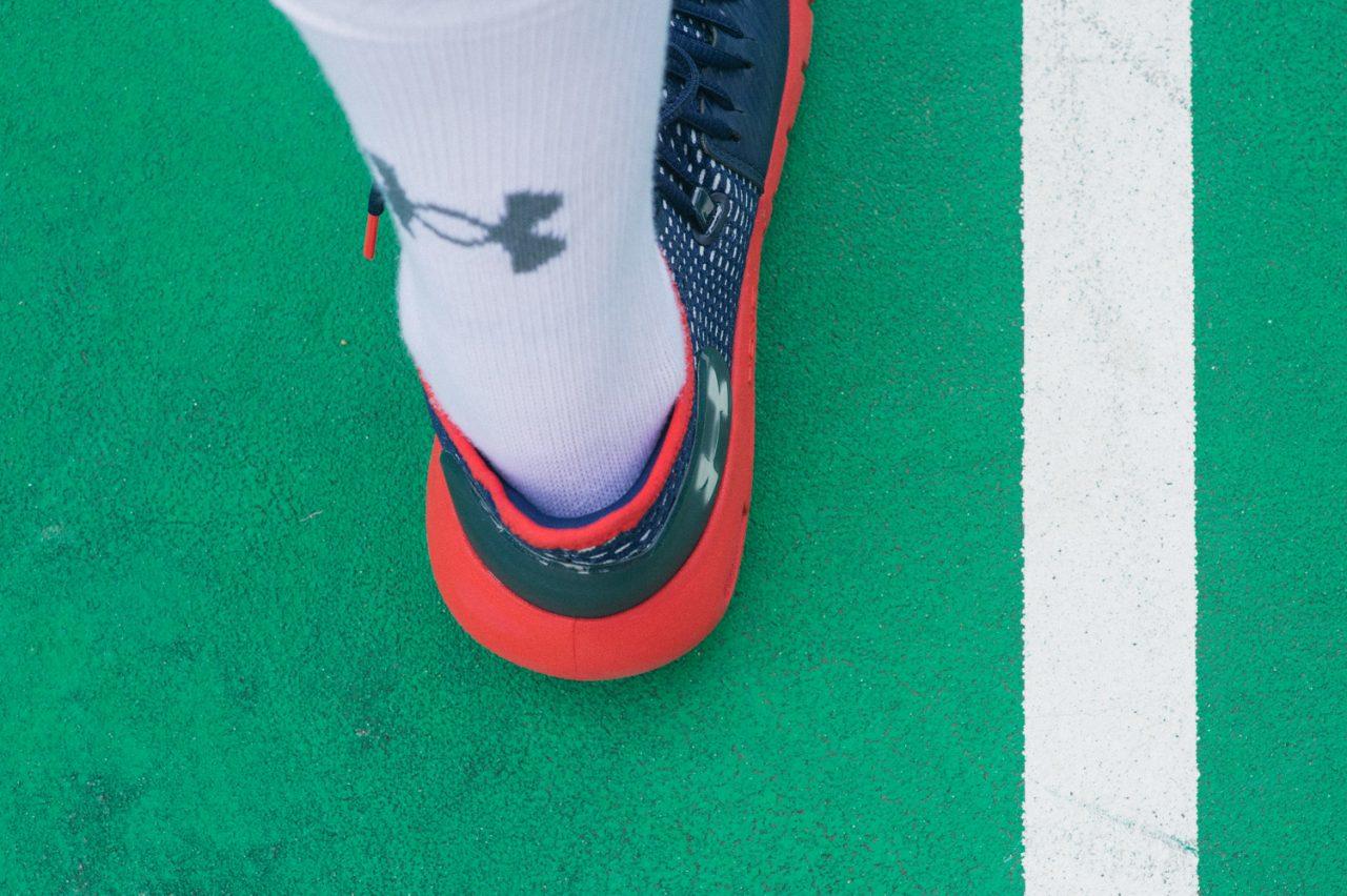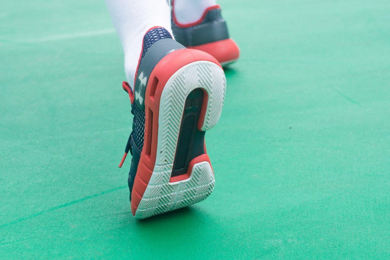 Under Armour HOVR Havoc 除了中底科技之外,最令小编感兴趣的是大底结构,中后掌挖空露出内部的 TPU 支撑片,好奇这块支撑片范围多大下我们扳了扳鞋子,前掌灵活的弯曲程度好比跑鞋,这让我想起另一双也是出自设计师 Leon Gu 之手的 Drive 4,足弓镂空思维有异曲同工之妙,而实战下来合乎期待的流畅,弯折处大约落在第一与第二鞋带孔之间,因鞋背采用织布,所以没有太多的异物感,当然低筒的设定加上鞋口周围易弯的材质特性,造就纯正低筒鞋的体验,让脚踝有无拘无束的自由度,如果是希望有脚踝包覆性的朋友可以等之后的中筒版本。