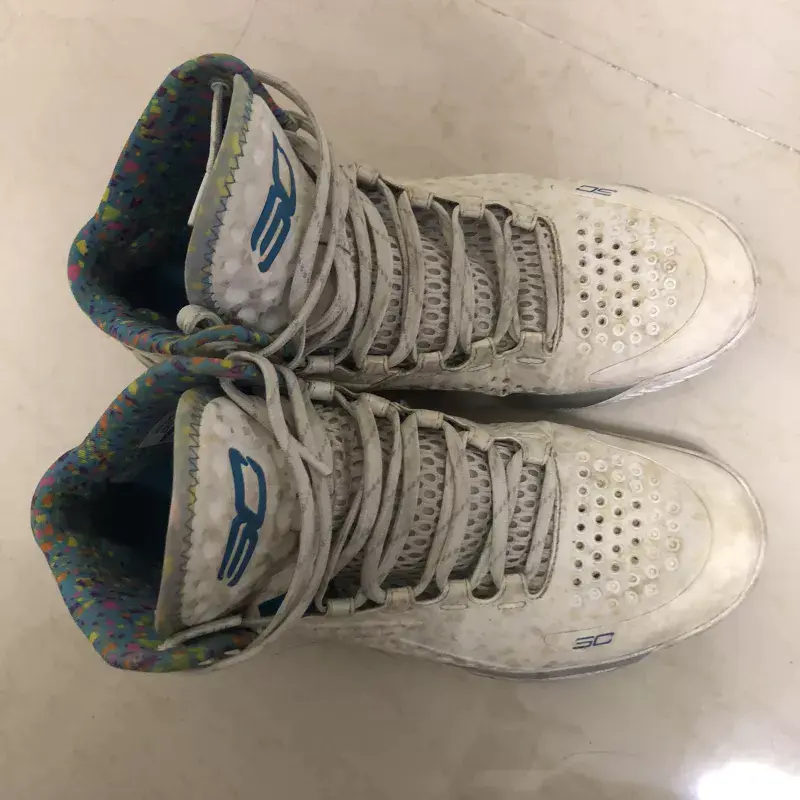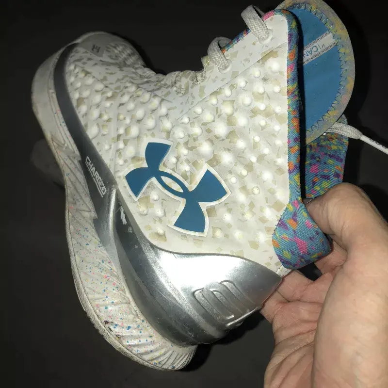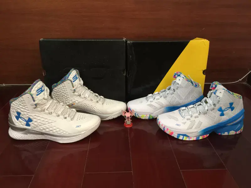 由于近期受到了伤病影响(投篮手肘腱梢炎、肌腱炎,简直投不了篮的酸爽。但是与鞋子性能无关了)我插入了这个老鞋新评,挑选了我个人非常喜欢(仅限外观)的UA Curry 1 Party&Surprise (Splash Party)夜光生日版,希望大家不要嫌弃- -!