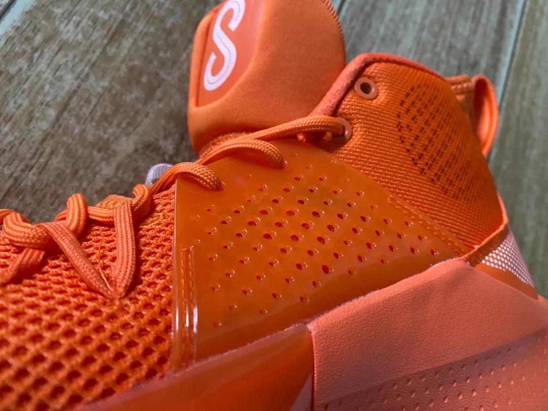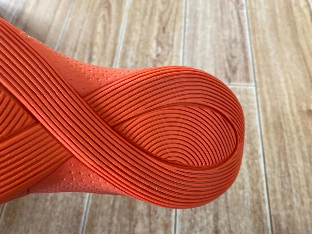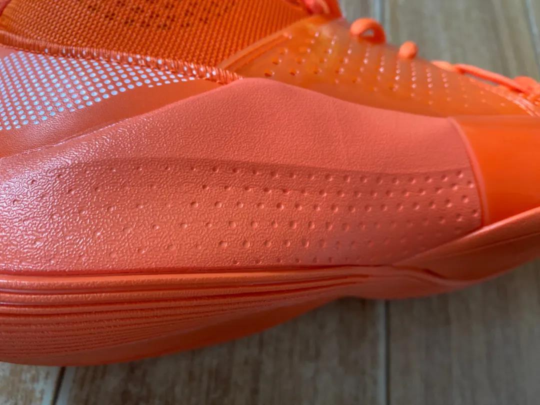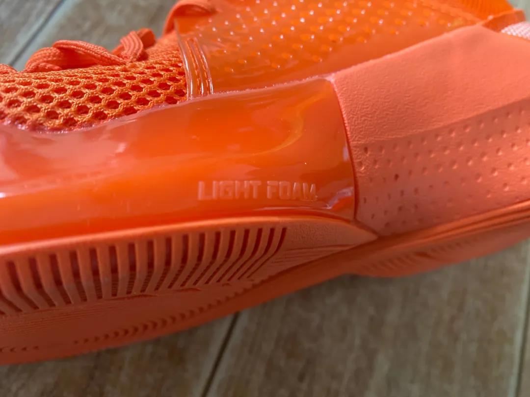 但是有一说一,我觉得音速8的中底相较于音速7还是有一定升级的,首先它的中底调教密度应该是更硬了,因为这双鞋初上脚的感觉明显比音速7更加的韧,而且在前掌的外侧有包边的处理。