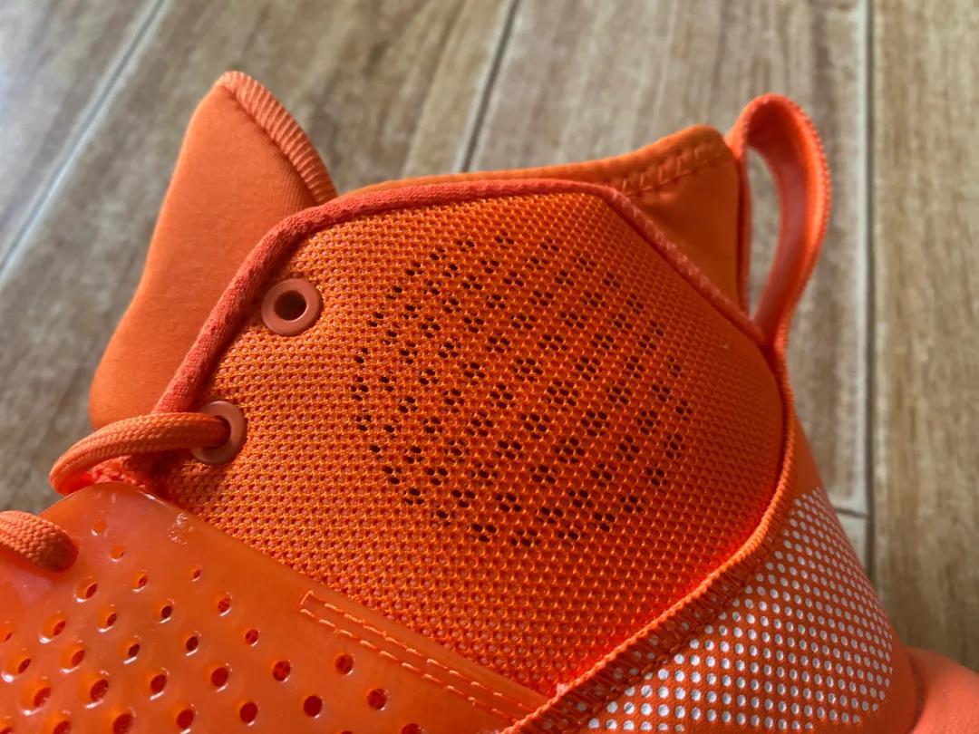 球鞋整体用到了大面积的编织材料,通过细密的透气孔,也可以感受到这双鞋的透气属性应该是属于不错的那一档。