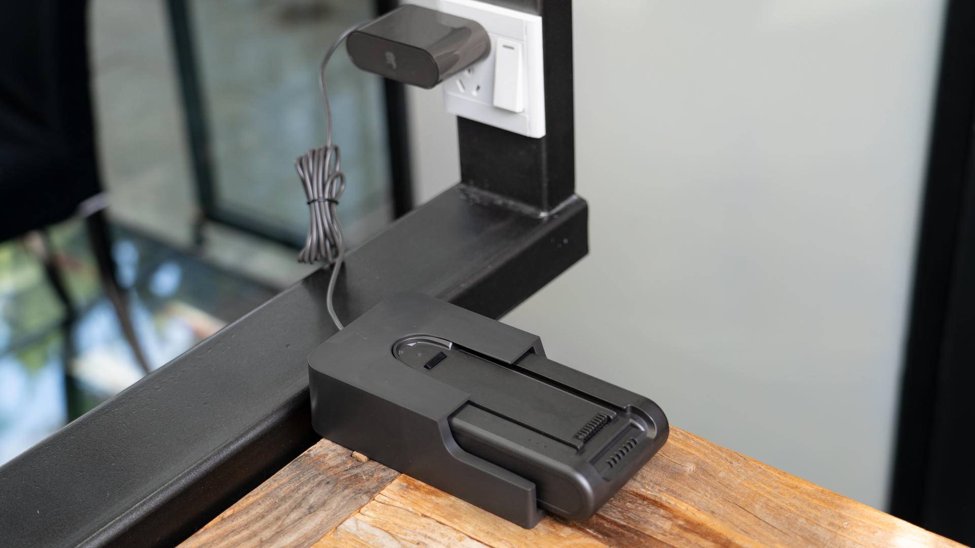 首先,Z11 Pro配置的是一个单独的充电挂架,将墙体打孔后直接挂载,通过电源适配器和线材进行连接,并且因为电池包是可拆卸的设计,所以在使用方式上就可以自行调整,更多样化。