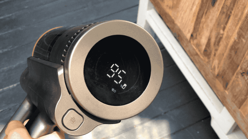 可实时显示吸力大小和电量的屏幕用起来确实直观很多,比如在意外情况下有异物住风道,屏幕上也会有相应的指示灯亮起,提示你需要及时清理。