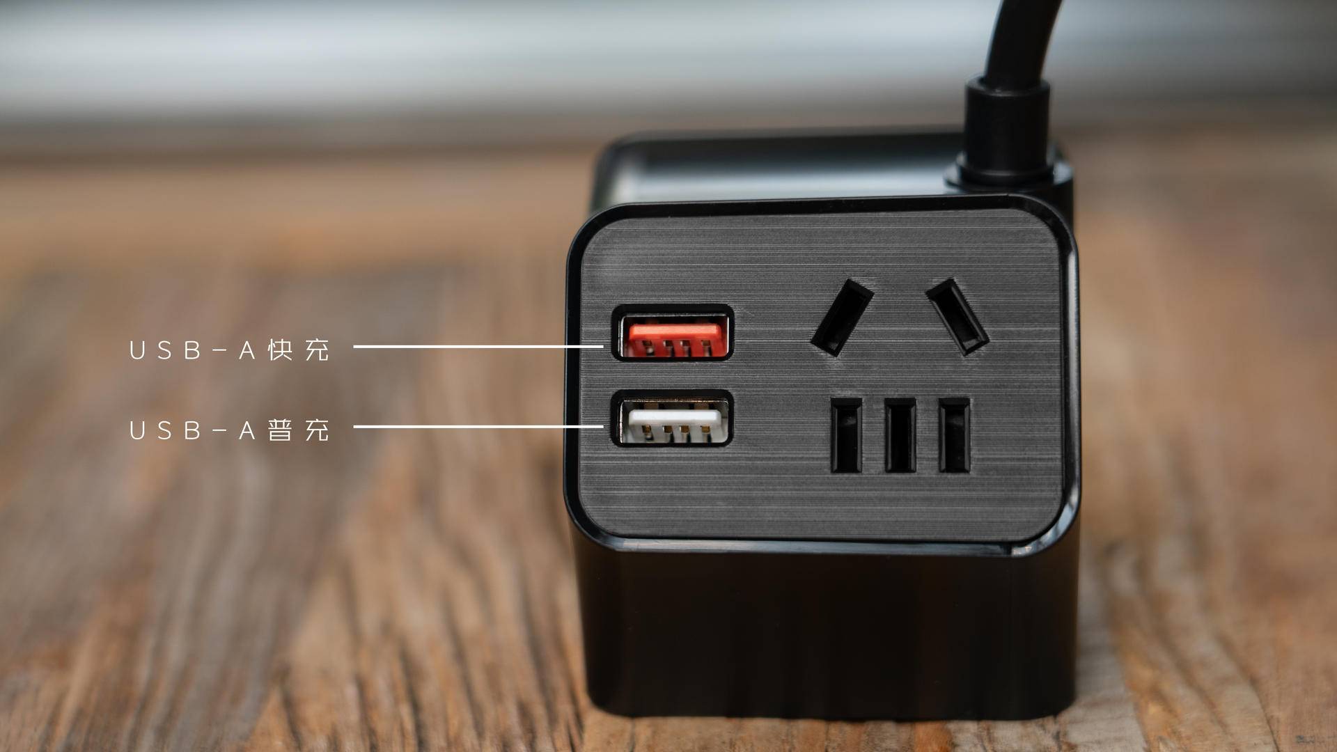 在材质上使用镜面与拉丝饰板区分插座主体和各个插口功能区,视觉上更容易识别。