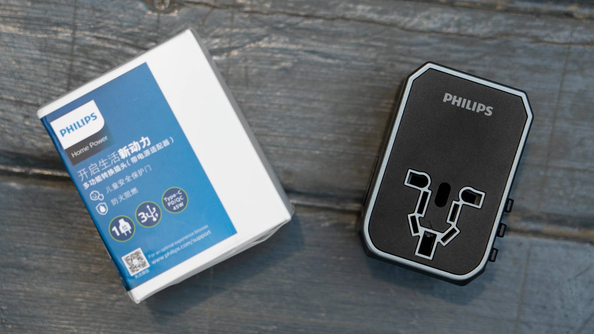 我们同时体验的还有飞利浦旅行居家插座,配置有45W的Typc-C接口,三个USB接口以及全球通用的转换器插头(美标 欧标 英标 欧标),在全球224个国家及地区通用。