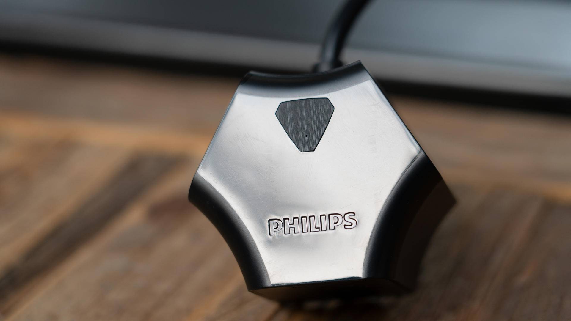 顶部是飞利浦的英文LOGO和微动结构的开关,并配有LED状态指示灯。