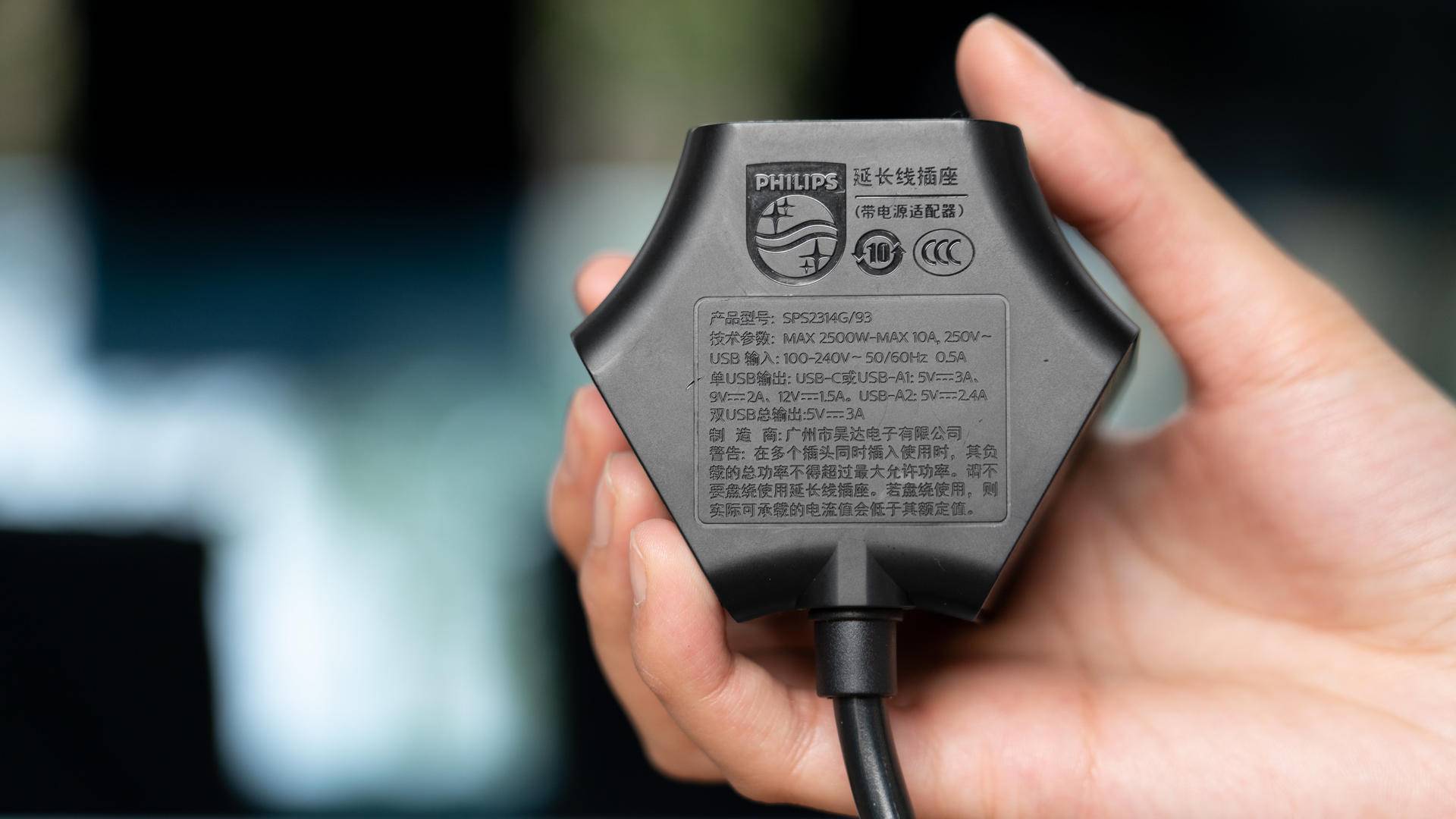 在功能上,飞利浦摩天轮插座配置有三个AC电源插口(2500W Max),两个常规USB接口(快充和标准)和一个Typc-C接口(PD),峰值功率可达18W。