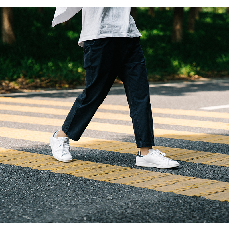 新的九分休闲裤,因为粘毛的问题取消了黑色改为了藏青色,卡其色由夏天的浅卡其色,改为深卡其色,更适合秋冬搭配。