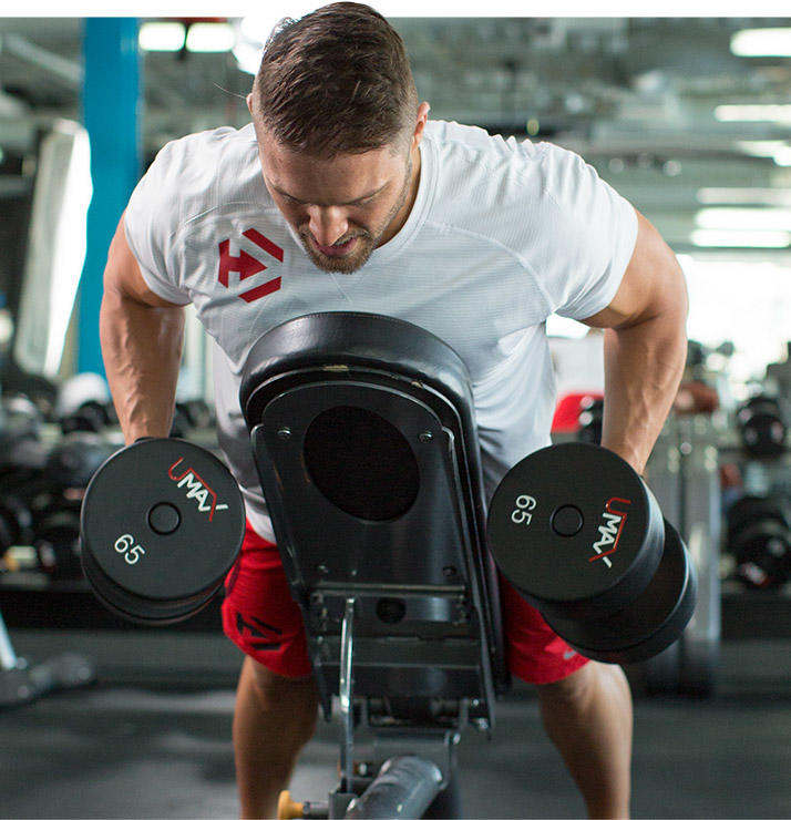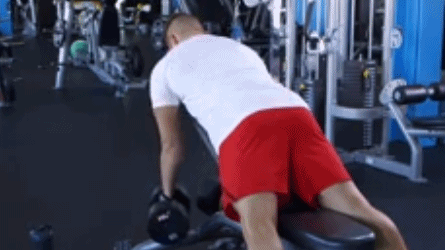 俯身划船这个动作借助了上斜靠椅,这样是为了孤立躯干的辅助发力。在做这个动作的时候,上提至高位后,暂停2秒,感受背部中部的挤压。