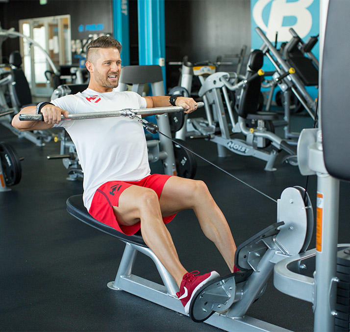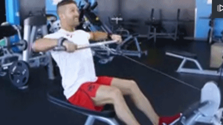 5.第五个动作,坐姿高位划船4x14,组间休息90秒。