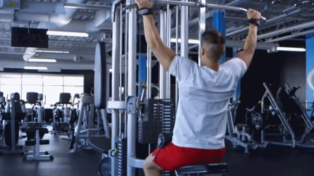 高位下拉这个动作,是任何背部训练都不会忽略的,它有利于建造你宽大的背阔肌,但是你需要专注于控制你的节奏。在下拉的时候,感受肌肉如何收缩;在放回的时候,减慢速度,感受肌肉如何由紧绷的状态进行改变。借此来更好地集中背阔肌的发力。