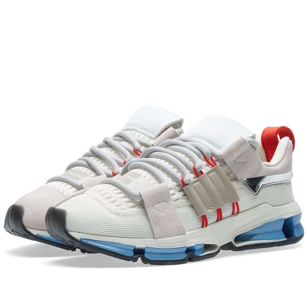 adidas Consortium 选择重塑 2003年首次亮相的复古跑鞋 A3 Twin strike,在经典鞋型基础上添加流行元素。鞋身以白色为主调,红、蓝作为点缀,鞋面由 Climacool 网眼材质结合麂皮组成,鞋带处加入反光拉标装饰细节,延续了中底的可见缓震装置,造就复古与前卫科技感相碰撞的外观。