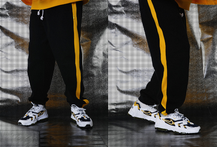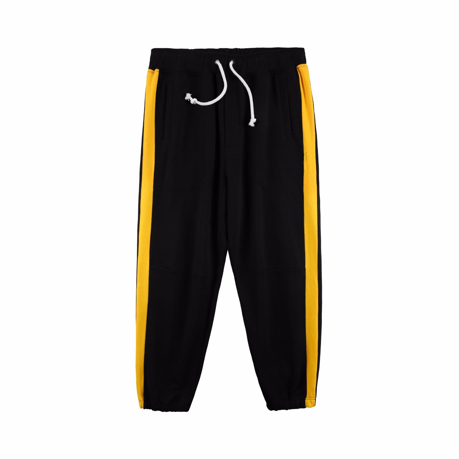 裤子选择的是RDET的运动裤,相对宽松的版型穿起来非常舒服,侧面的黄色部分采用抓绒的材质,让整体有层次感,收口的设计也可以让你轻松地搭配球鞋。