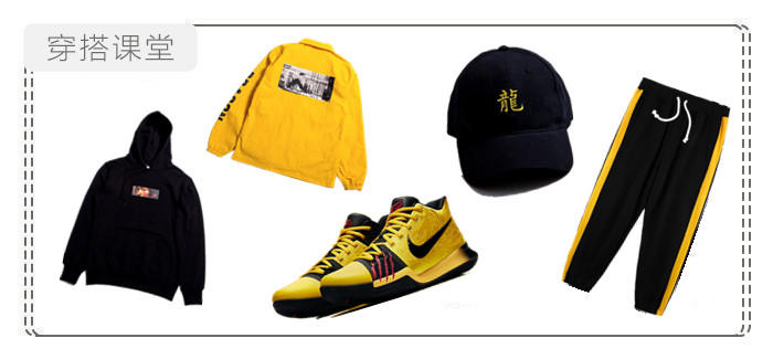 早些天NIKE Kyrie3 Bruce Lee让不少欧文密、科密、李小龙密集体高潮了一把,也让李小龙重新回到了大家的视野。作为中华武术的代表人物,李小龙在世界的影响力没得说。而在潮流圈,他在《死亡游戏》中经典的黑黄造型也是不少品牌与设计师的致敬对象。本期的穿搭课堂 就以Kyrie3 Bruce Lee为主线,搭配疯狂热爱李小龙的SSUR,完成一套非常“李小龙”的搭配。