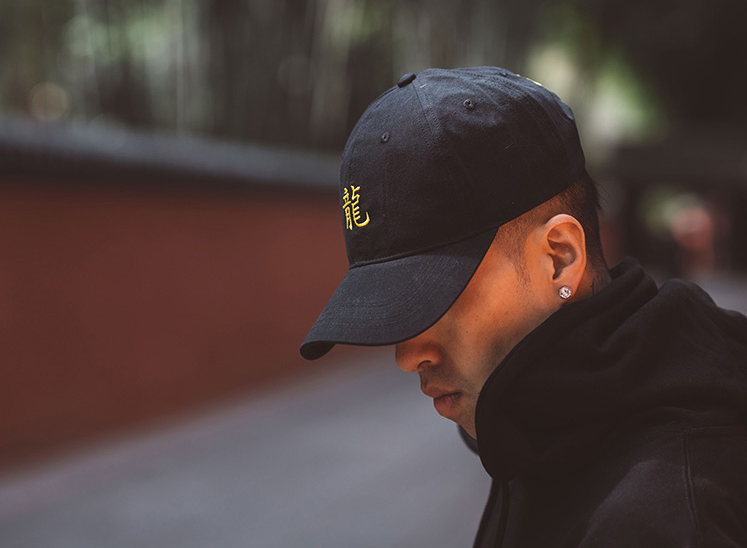 既然是李小龙主题,那么中国元素自然是必不可少的。弯沿帽的百搭属性自然不必多说,精致的“龍”字印花会给整体的搭配起到画龙点睛的作用,中国风满满。