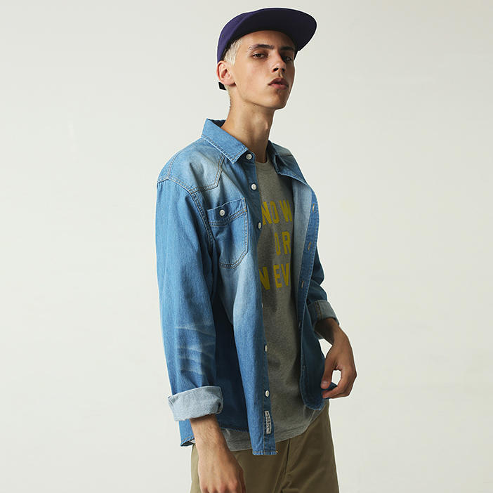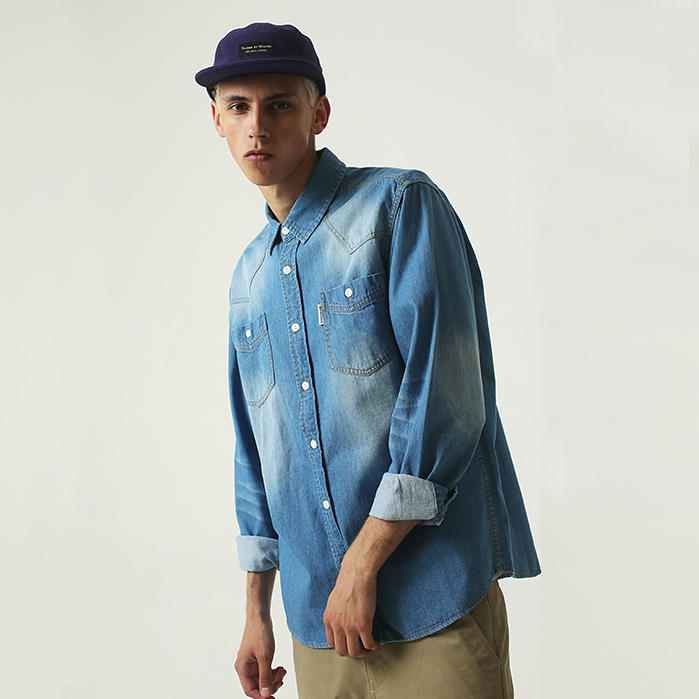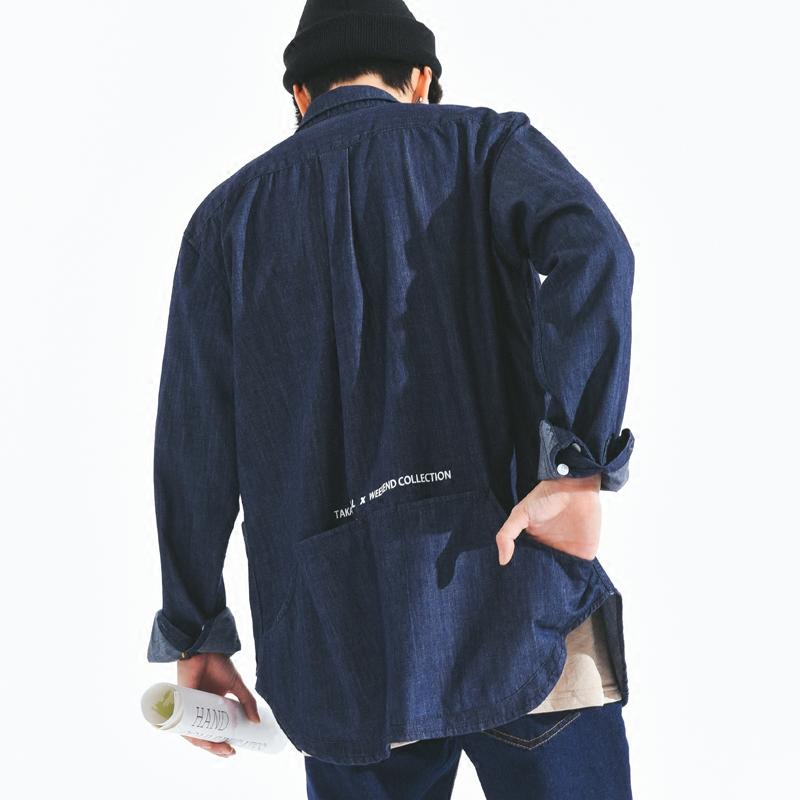 以美式复古工装为灵感,选用质感舒适全棉丝光牛仔面料,搭配4位 Weekend 主题 logo 印花, 正背面共有 5个口袋实用工装设计,搭配宽松衬衣版型,日常搭配简单使用率高的衬衣单品。