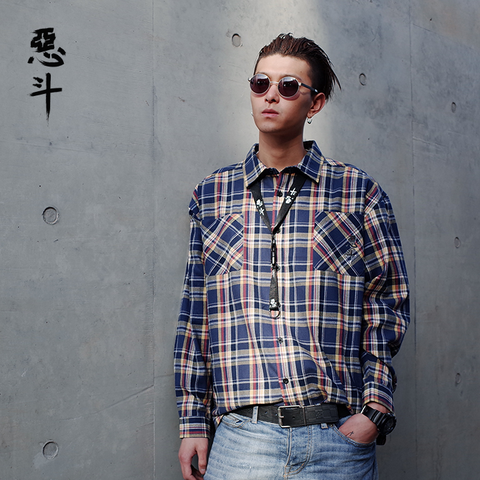 衬衫采用 oversize 廓形,下摆侧边加入了开叉设计,能够适应多种搭配方式。纽扣开版加入 EDOU 图案,增加品牌辨识度,提升质感,并在左胸口袋位置印有恶斗 logo。以深蓝为主、配合白、黄、红四色交织格纹,提升造型活力与跃动感。
