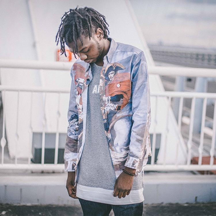 整件衬衫由图案覆盖,以喷墨印花工艺呈现。质感十足的拿破仑油画图案,搭配重磅细腻的做工,扎实走线与胸前口袋金属扣提升细节表现力。耐脏颈部面料的使用、内袋设计均提高实用性。背部不规则缝制工艺展现的特点设计感。