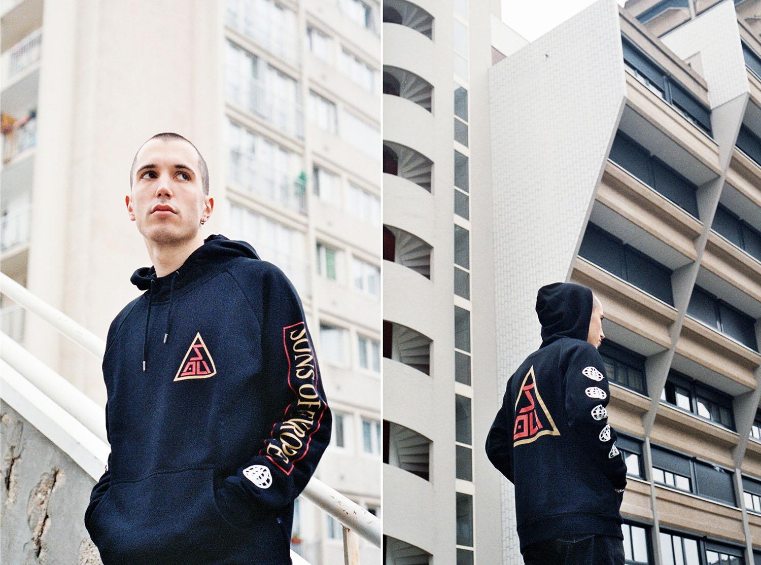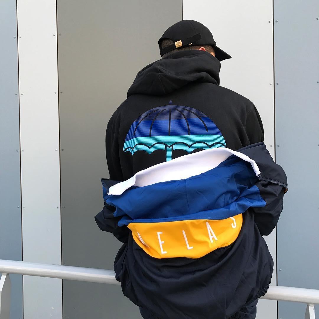 Hélas. 2016「Connection」由JB Gillet,Karim Bakhtaoui与Karl Salah三位滑手上身,该系列围绕主题概念延续了上一季的简约型格,将标识性的雨伞Logo与拼色元素结合,带来一系列穿搭可塑性极高的单品。