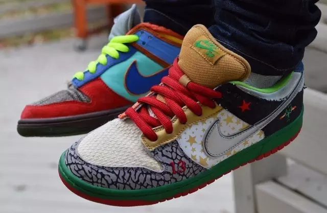 提到“What The”配色,主打鸳鸯设计的 “What The” 系列配色一直具有超高人气。2007年,第一部滑板主题的电影《Nothing But The Truth》上映,Nike为了庆祝电影上映,特别请来了设计师James Arizumi 设计一双有史以来最靓丽的Nike SB Dunk。James Arizumi则将历年来出名的Dunk设计元素融为一体,设计元素取自多达32种配色!推出Nike SB “What The Dunk”。之后“What The”系列一炮走红,开始出现在广大Nike签名鞋款之中。