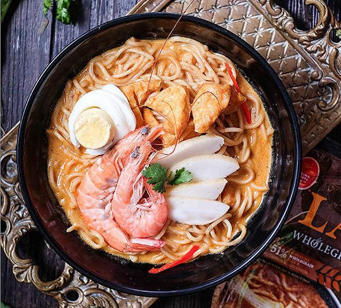 咖喱是商人最早从印度带来的实物,在新加坡饮食文化中,咖喱占据着非常重要的地位。烹饪咖喱的方式也是一绝。咖喱味最突出的地方在于它浓浓郁的椰奶香味。汤汁入口微辣,能够闻到淡淡的海鲜味。原粗的面条口感劲道,喜欢吃软的需要煮的久一点,也可以根据自己喜好加入一些海鲜、青菜等。每个人的口感不一,也许方便面不适合所有人的口味,不过作为最好吃的方便面,还是值得大家一试的。
