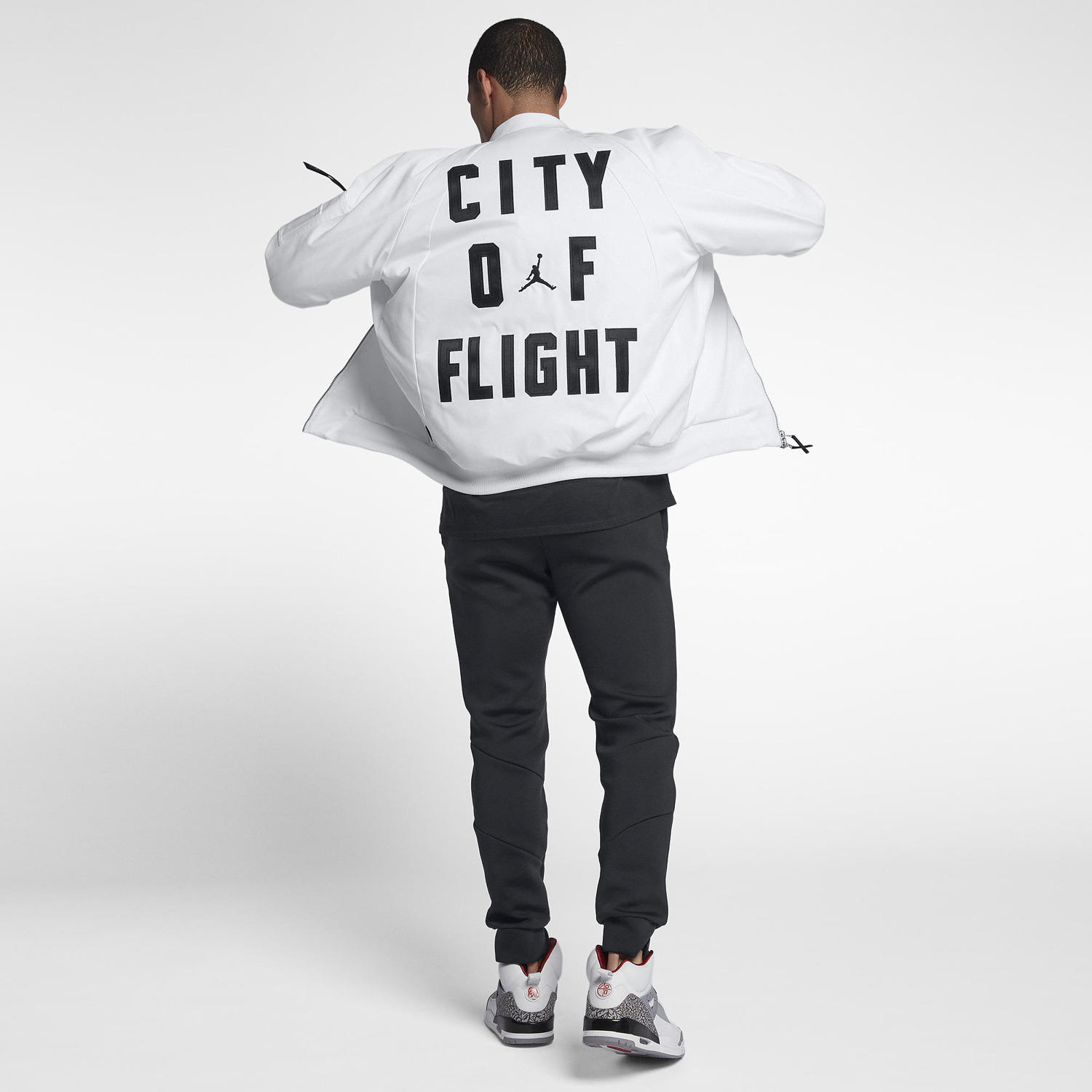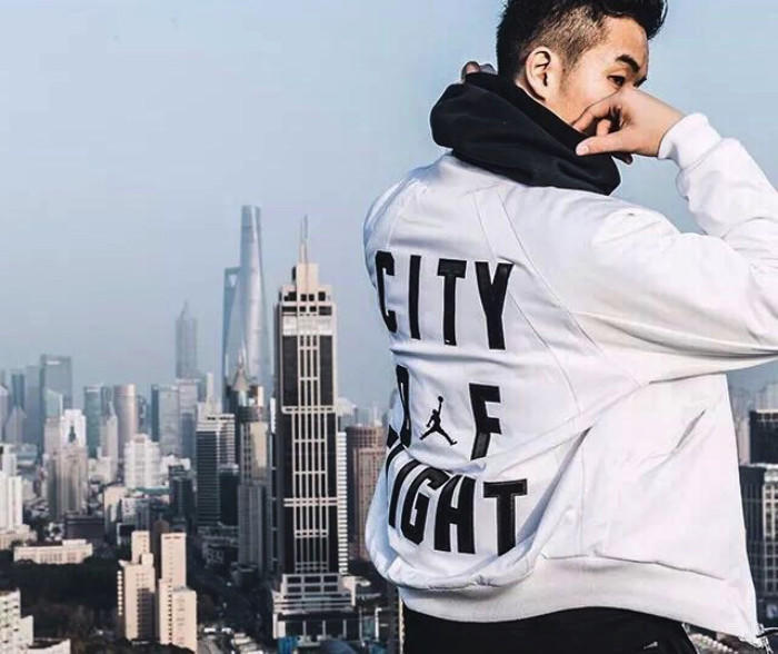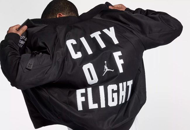 City of Flight夹克是2018全明星期间Jordan推出的全新运动夹克,由郭艾伦亲自上身示范。承袭元年款 1985 Air Jordan 系列中 Air Jordan Muscle 夹克的设计线条,重现经典。