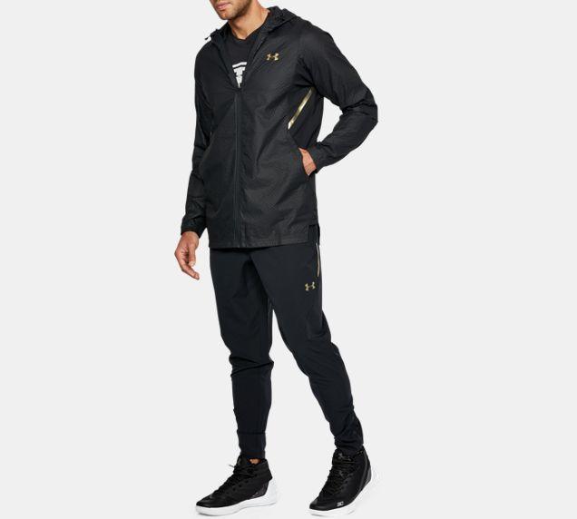 腋下配有弹力网眼布镶面,有助于提升运动灵活性,外观方面,UA Select夹克采用了全黑色的整体设计,细节如LOGO,条纹点缀等采用金色呈现,低调而不失奢华。