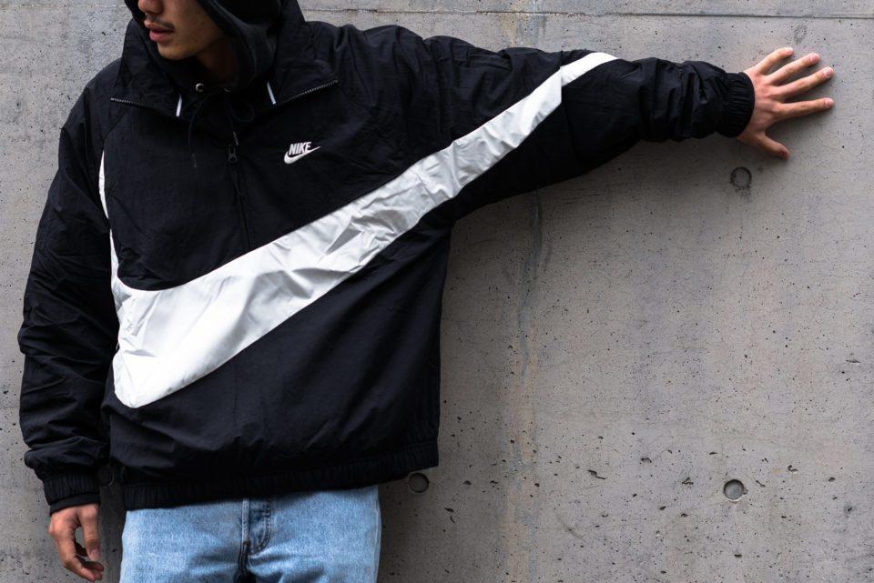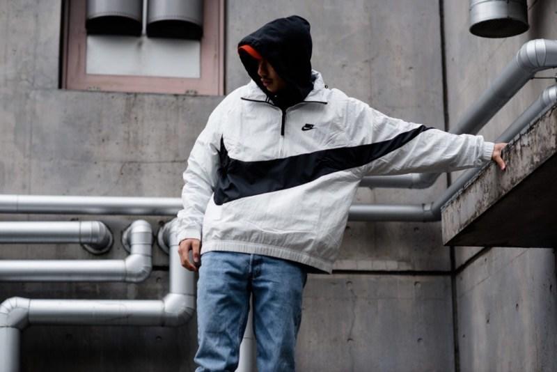Nike设计团队全新打造的Anorak夹克便成为一款吸睛利器,巨型的Swoosh LOGO是这件衣服上唯一的装饰,与衣服整体的撞色设计师这款运动夹克的一大亮点。