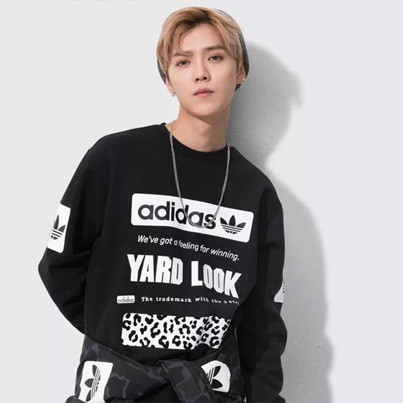 鹿晗亲自上身展示的这款adidas Graphic Crew卫衣在正面融合了多种印花图案设计,为原本全黑色的低调内敛设计融入了更多的潮流味道。