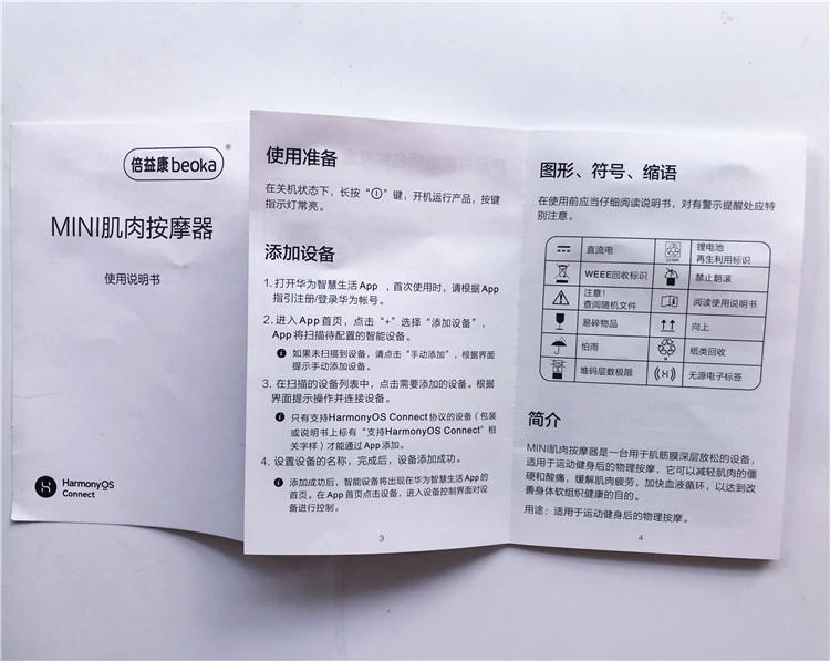 在筋膜枪手柄顶部可以看到鸿蒙智联的标志。作为全球第一款支持鸿蒙智联的筋膜枪产品,倍益康的这款筋膜枪拥有了更多智能属性。如果不是搭载鸿蒙系统的手机,也可以直接下载“智慧生活”APP再通过蓝牙连接即可。