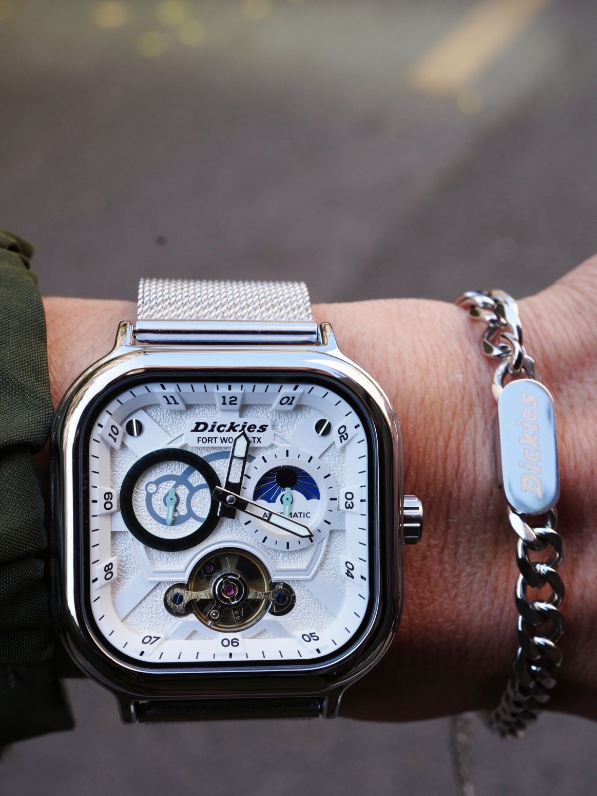 本篇笔记关联了Dickies/帝客 城市户外系列 轻奢日月星象潮流时尚方形日历百搭多功能夜光防水机械男女同款手表 银色、Dickies/帝客 城市户外系列 轻奢日月星象潮流时尚方形日历百搭多功能夜光防水机械男女同款手表 黑色等商品,为用户提供真实的使用体验和购买参考。