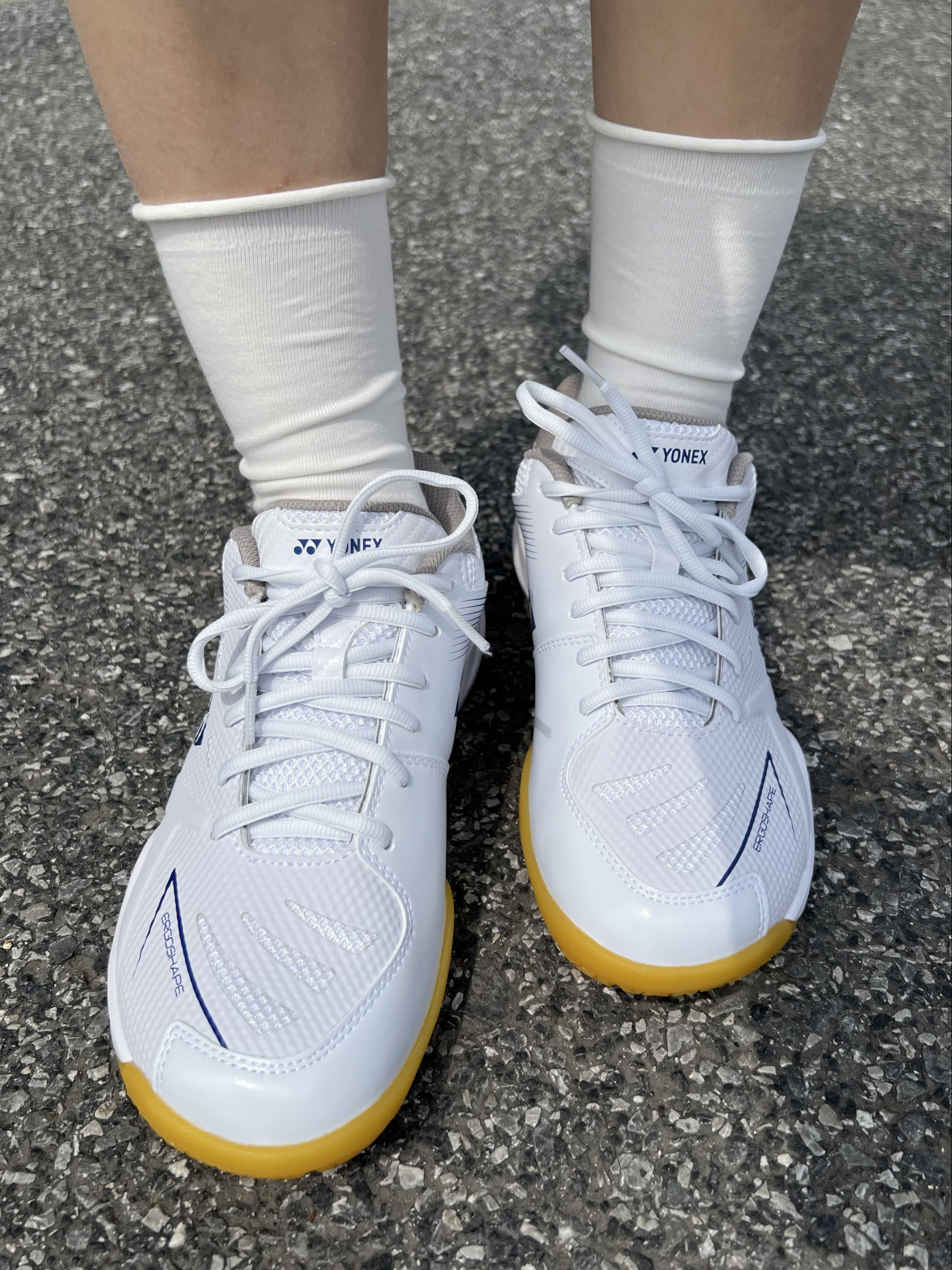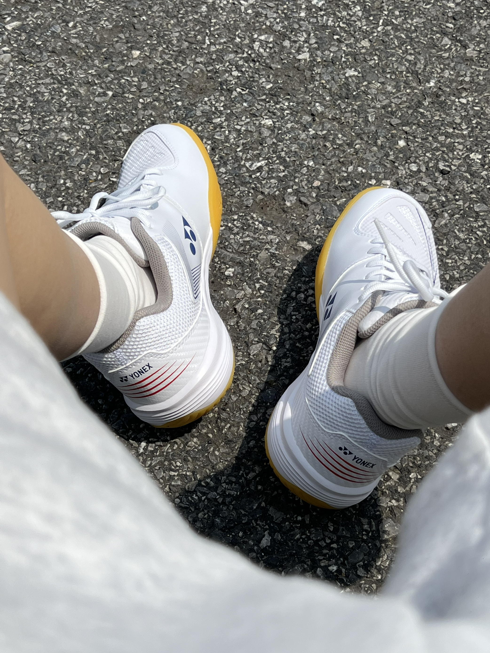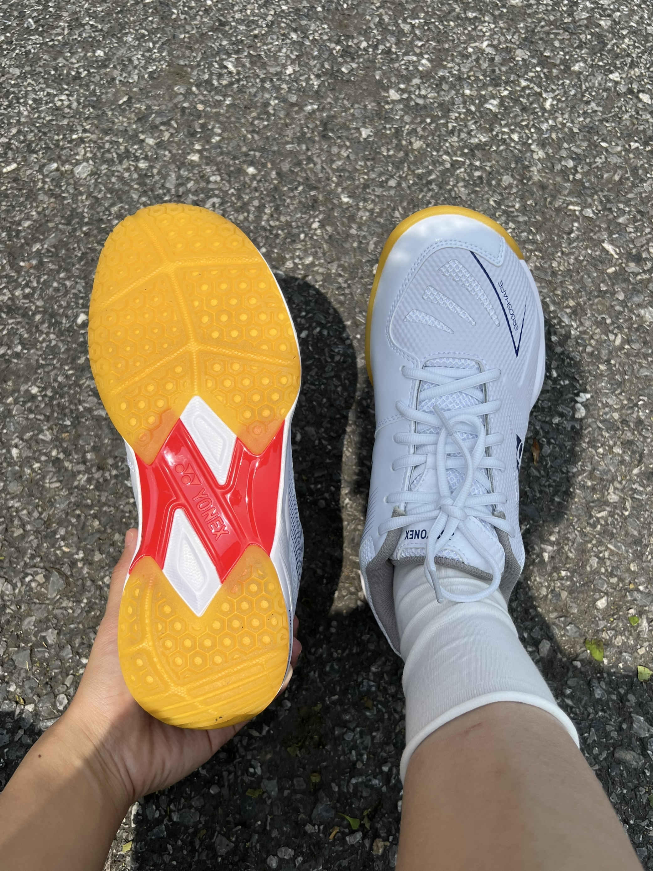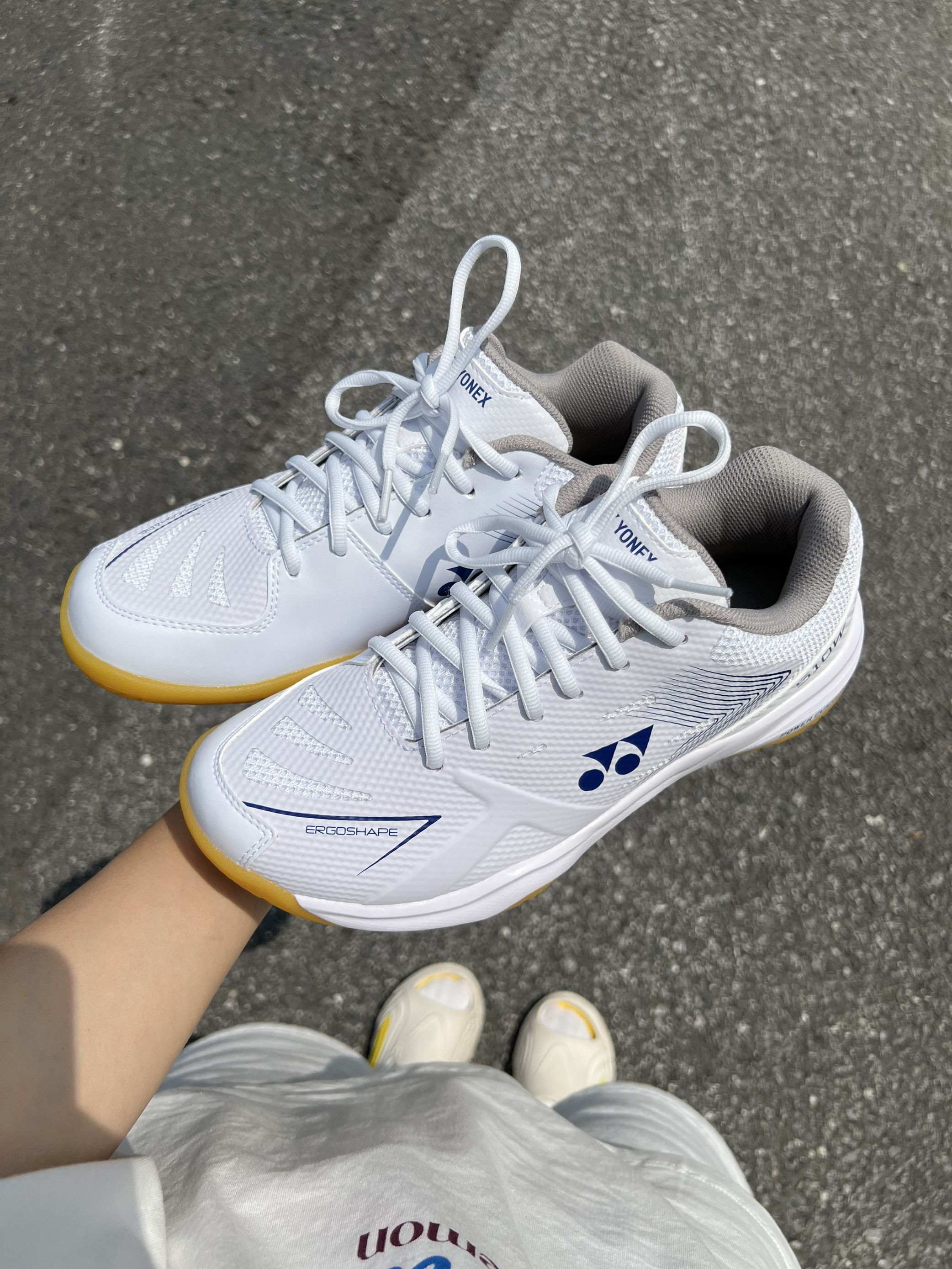因为最近迷上打羽毛球🏸️ 然后脚大拇指连续起了两次水泡后 我终于买了我第一双羽毛球鞋👟 咱就是说 挑一双好看的羽毛球鞋太难了吧 最后选了这双尤尼克斯 简约大气的配色就很绝 除了打球穿平时搭配也可以穿到 - 鞋子的包裹性强 脚底相对于试过的其他羽毛球鞋软但比一般运动鞋底稍硬 穿久了适应了也还好 比较贴合脚部 而且它宽脚掌的很适合我这种脚小拇指突的人 穿起来很舒服😌 防滑效果很不错,在瓷砖地先测试...