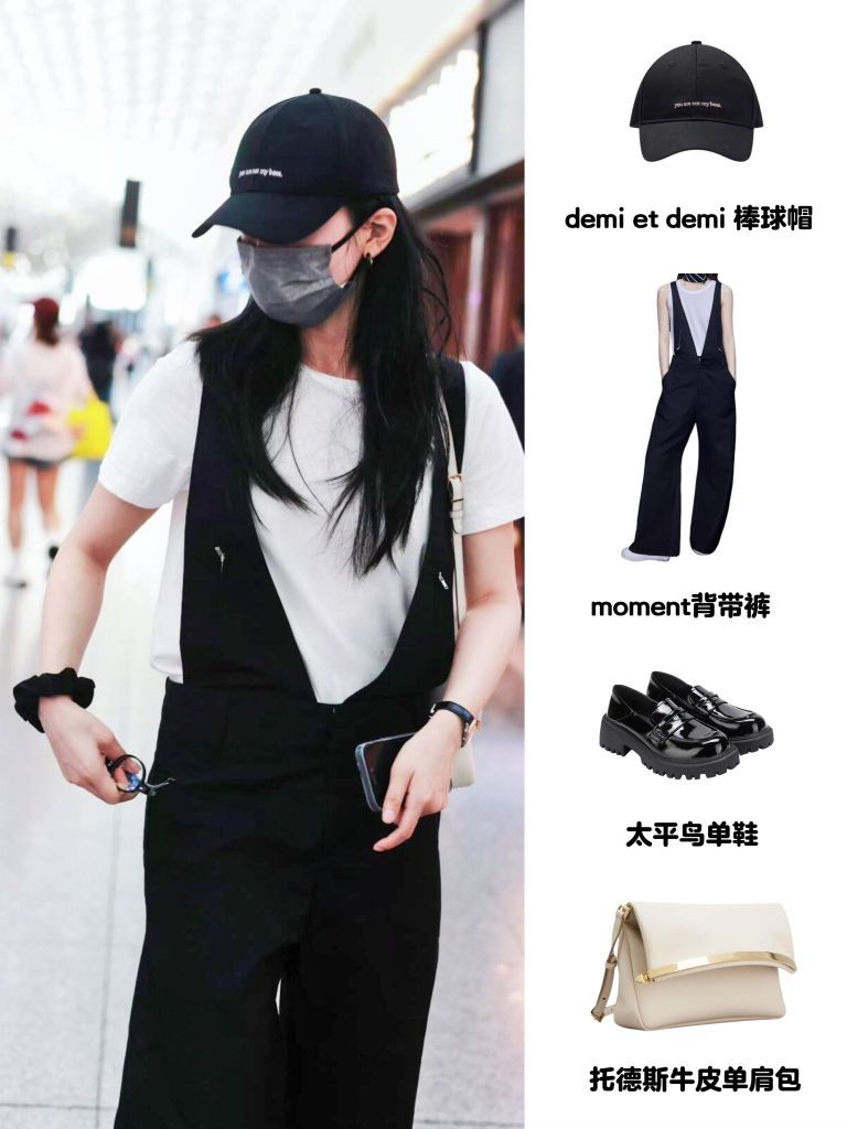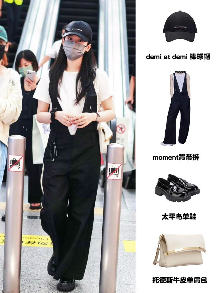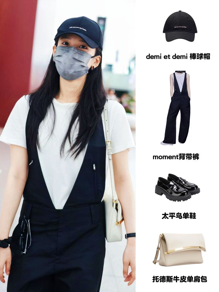 🧢Demi et demi棒球帽瞬间提升休闲感,黑色超百搭。Moment背带裤绝对是点睛之笔,宽松版型遮肉显瘦,牛仔材质复古又清爽。脚踩太平鸟金属扣单鞋,精致小细节打破沉闷,轻松穿出少女感。🧳托德斯牛皮单肩包质感满分,皮质光泽显高级,小巧容量日常出街刚好。整套搭配慵懒又不失精致,明星同款轻松get