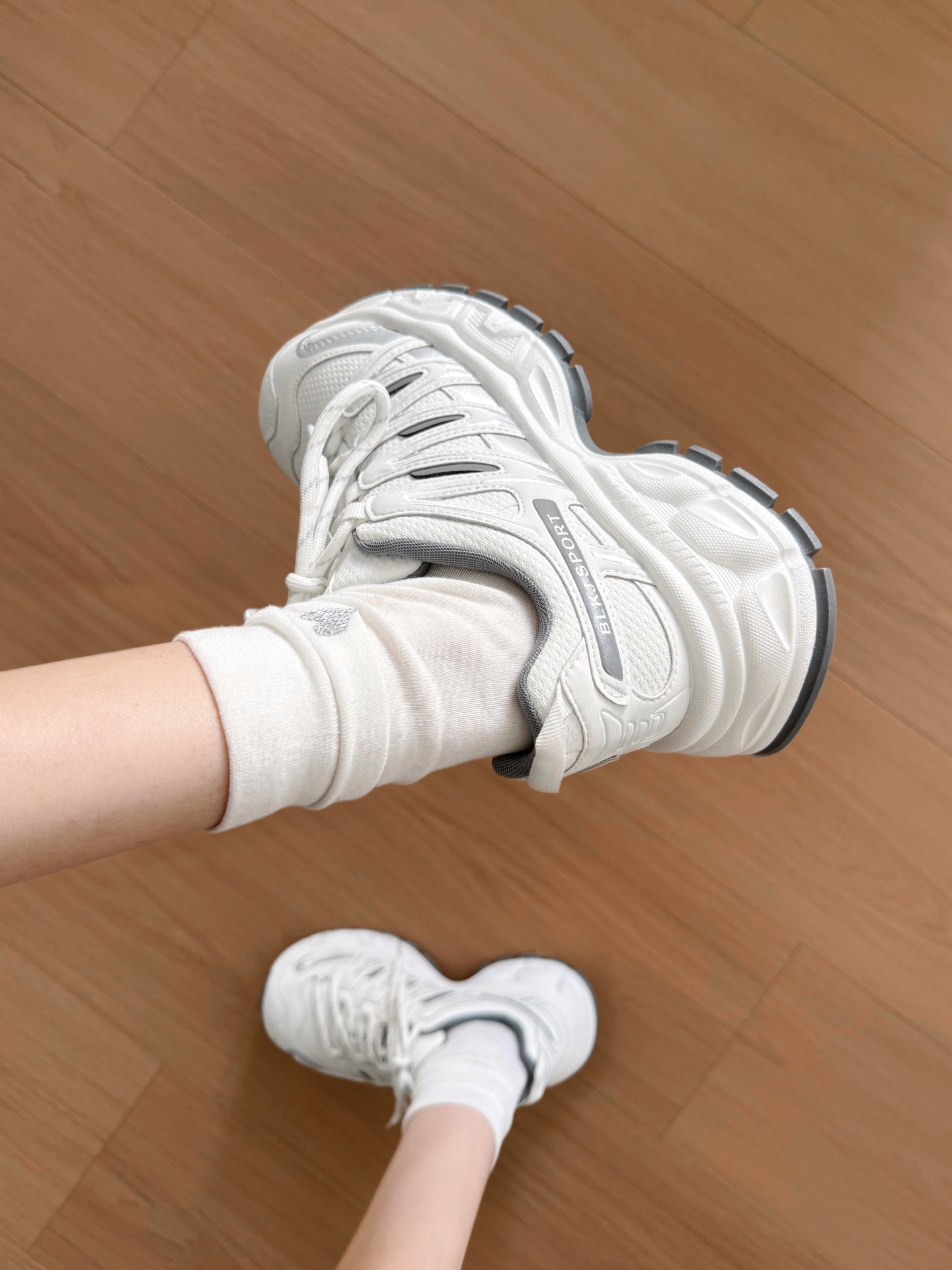 家人们!长期主义鞋这不就来了! 圆头+斜绑鞋带+白灰配色+增高 显jio小、显腿长、还hin百搭😍 厚底增高大概3-4cm的样子 不多不少刚刚好 不容易崴脚 我是真的很喜欢这个线条设计 流畅又耐看 穿上拍照心情都好好!! #潮人的春天来了 #此人鞋商极高 #买双新鞋哄自己上学 #分享心动老爹鞋 #新鞋零时差2026
